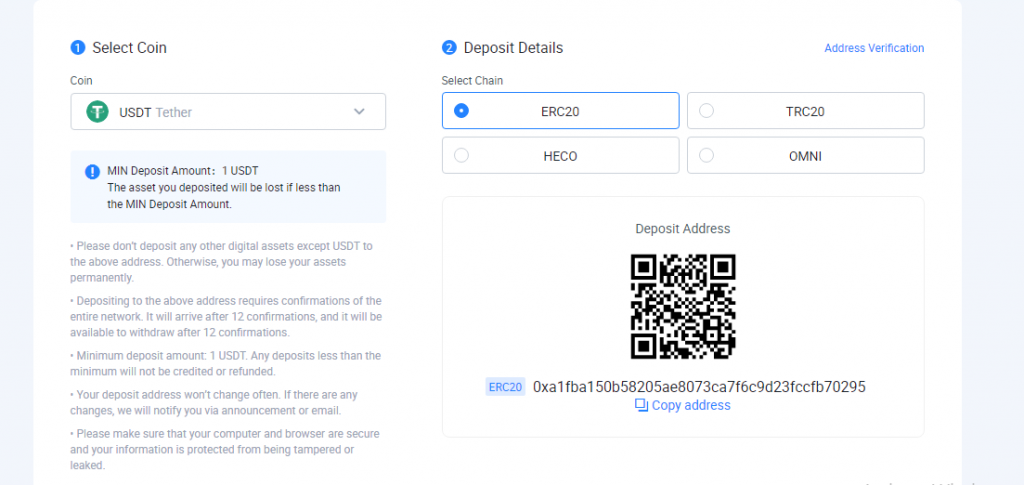 After then, you can now copy the address to your wallet address or scan the QR code to make the deposit.